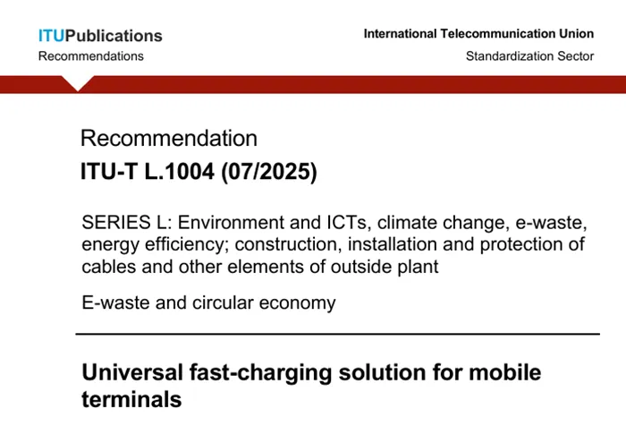 据微信公众号“中国信通院CAICT”消息,近日,由中国信息通信研究院(简称“中国信通院”)牵头,联合华为、OPPO、vivo公司撰写的标准L.1004《移动终端通用快速充电解决方案》(ITU—T L.1004, Universal fast-charging solution for mobile terminals)通过国际电信联盟电信标准化部门第五研究组(ITU-T SG5)审议并作为国际标准正式发布。