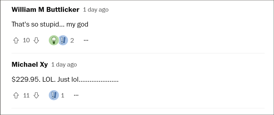 “一只剪碎的袜子要230美元。苹果用户只要是苹果产品,什么都愿意付钱”,一位外国网友直言道。还有网友讽刺称,“差点以为是4月1日“发布的新品”。