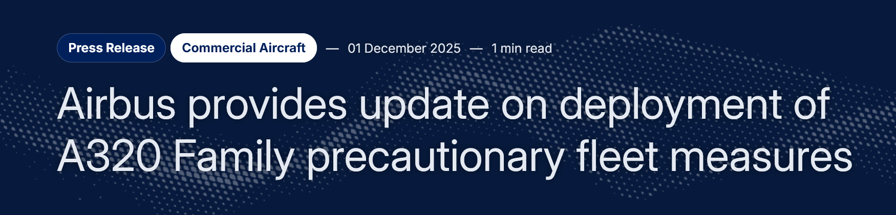 29日,空客中国在一份发给观察者网的声明中回应称,空客已积极配合航空监管部门,发布紧急运营商通告(AOT),要求运营商立即采取预防措施,实施可用的软件和/或硬件保护措施,确保机队安全飞行。该AOT体现在由欧洲航空安全局(EASA)发布的紧急适航指令(EAD)中。